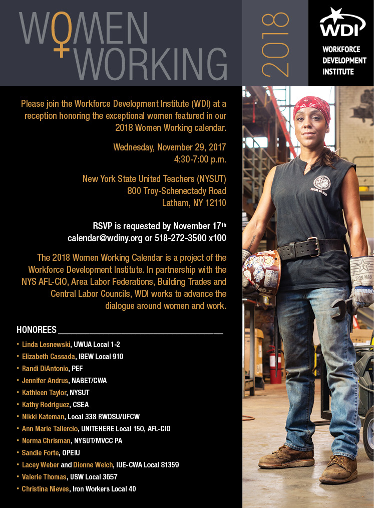 Please join us for a reception honoring the exceptional women of the 2018 Women Working Calendar.